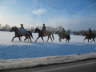 Los gehts - unsere Härteritt-Veteranen Sepp Schweiger und Mich Rester aus Schwandorf starten mit zwei Reitpferden und einem Packpferd.